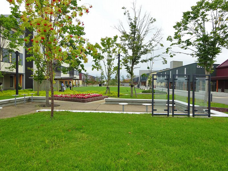 町役場裏の「オガール広場」。町役場周辺の町有地10.7haをオガールプロジェクトとして開発中。(2017.9)