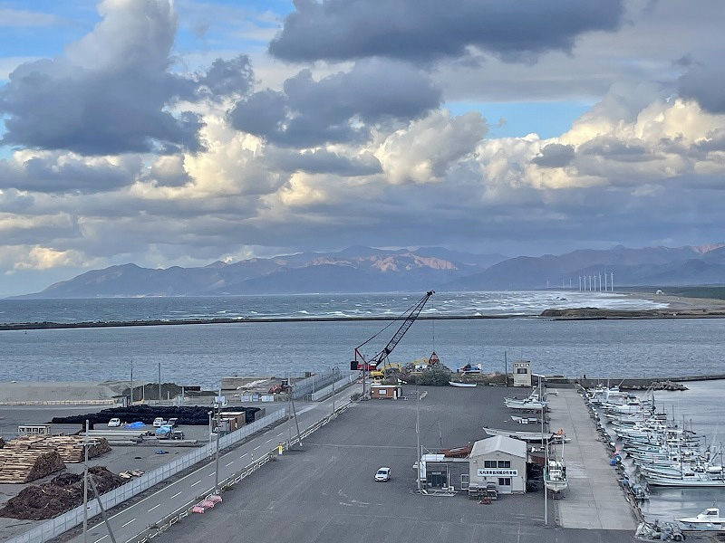 高さ100mの展望台から望む重要港湾「秋田港」。(2021.10)