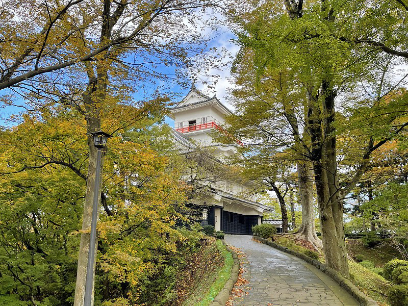 横手城址を整備した「横手公園」内に1965年に建てられた「横手城模擬天守」。(2021.10)