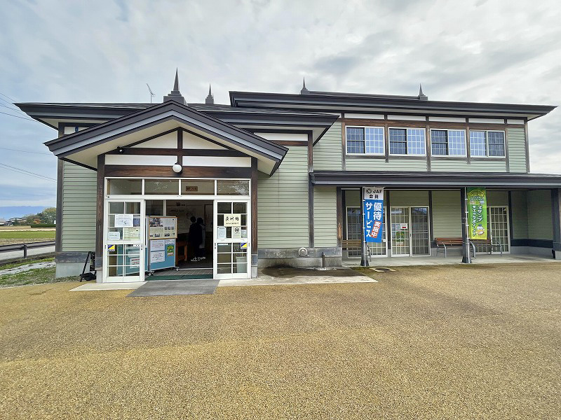 大潟村干拓博物館に隣接する農産物販売所「道の駅おおがた」。(2021.10)
