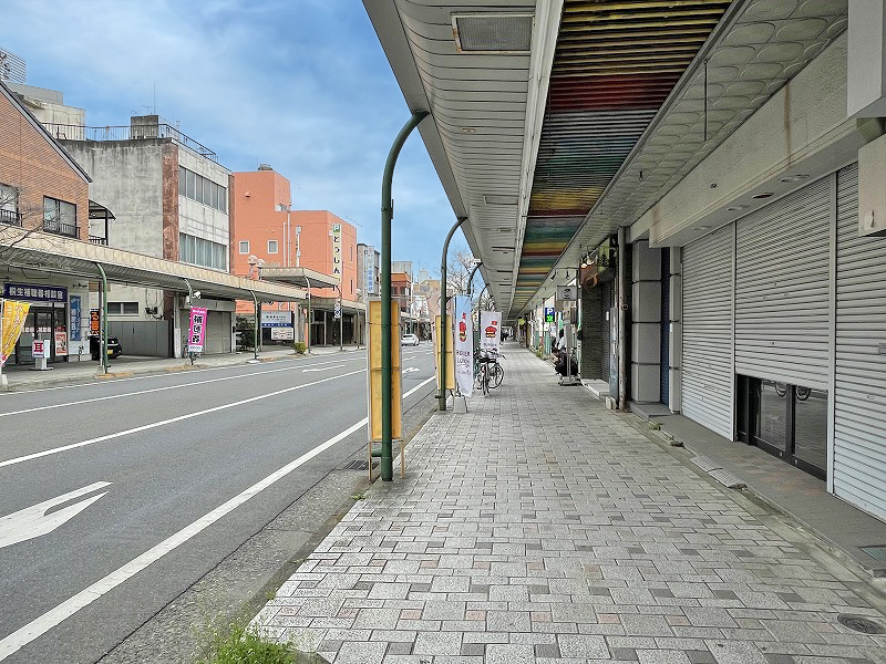 シャッター街化が進む「中央通りアーケード」。(2023.11)