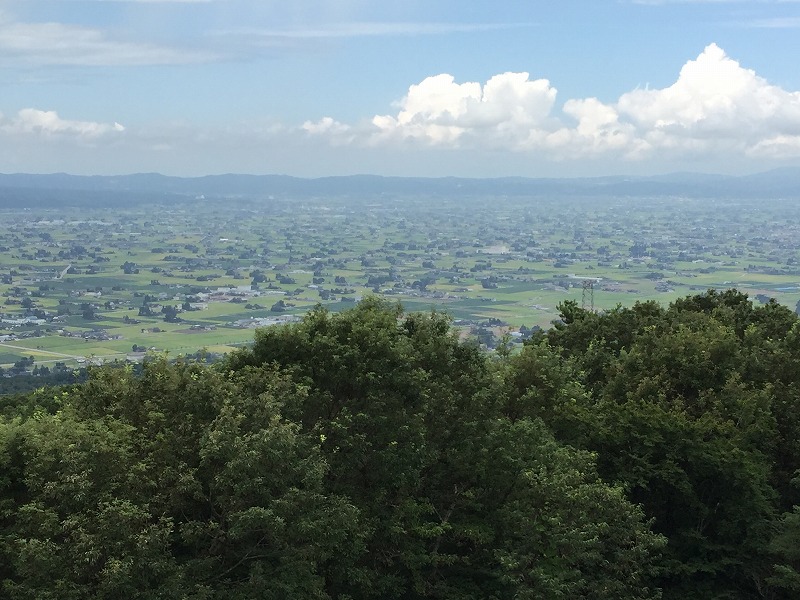 クロスランドタワーの展望台から眺める散居村の風景。(2015.8)