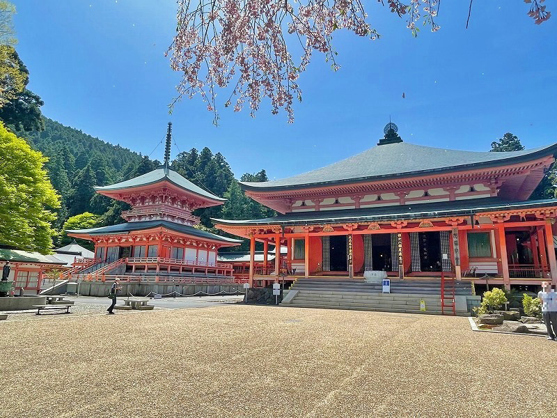 天台密教の道場でもある鎌倉時代初期に建立された檜皮葺の「本堂」(国宝)。(2023.12)