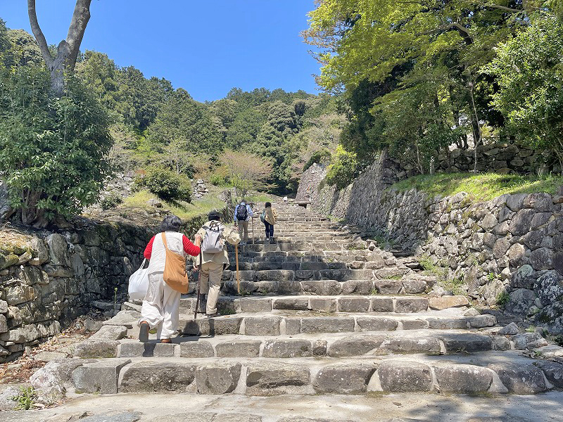 木組みの支柱が緑に映える1096年建立の「本堂」