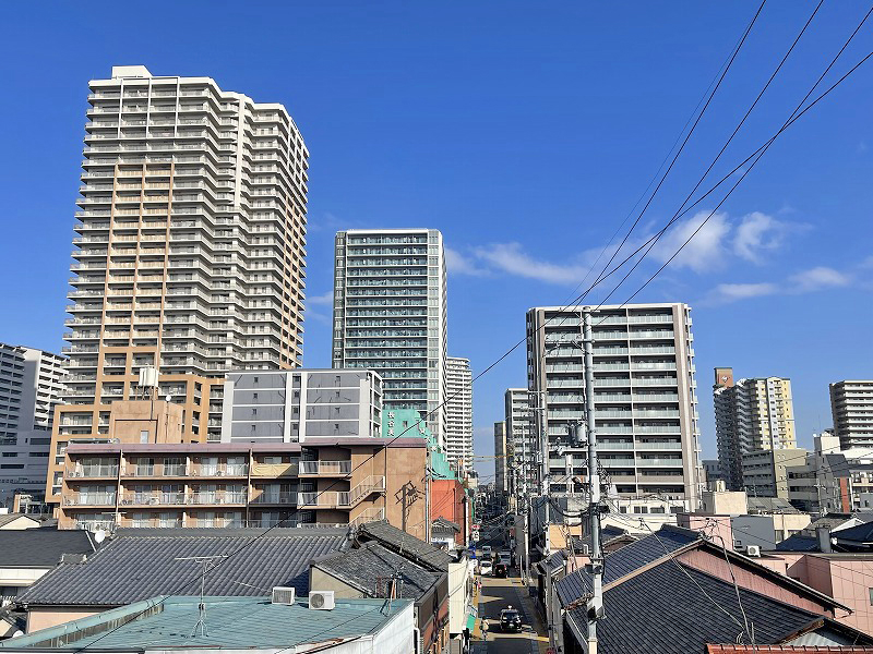 工場周辺に林立する従業員向け社宅。コンビニなど生活利便施設も併設。(2023.12)