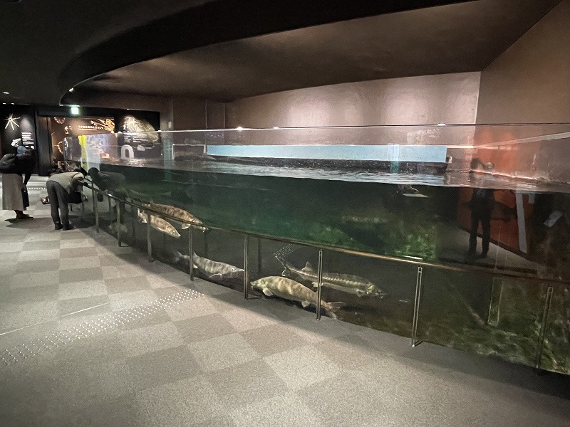教会を彷彿とさせるチャーチベンチが設置された「講堂」。(2023.12)