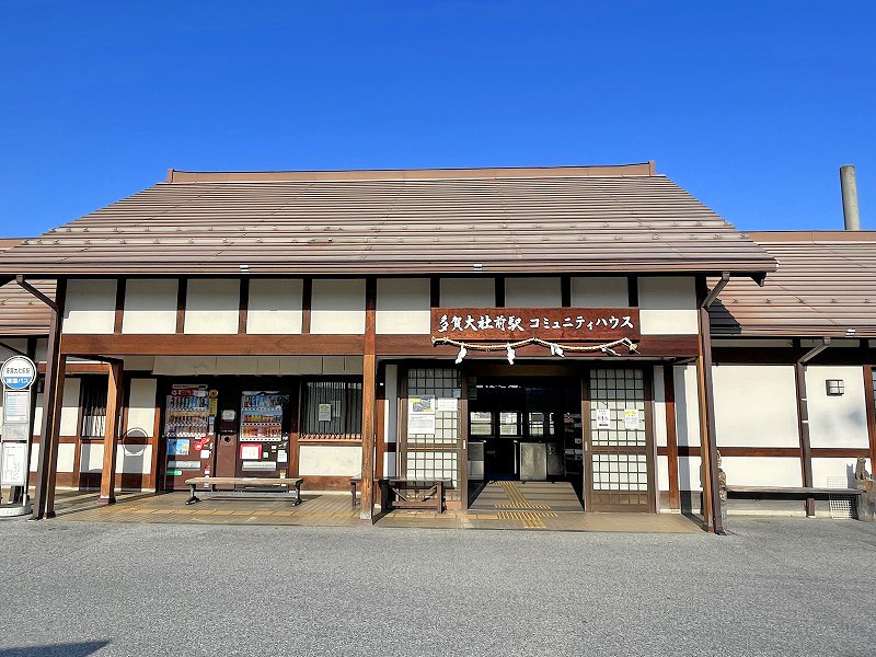 町唯一の鉄道駅、近江鉄道多賀線の終点「多賀大社駅前」。(2023.12)