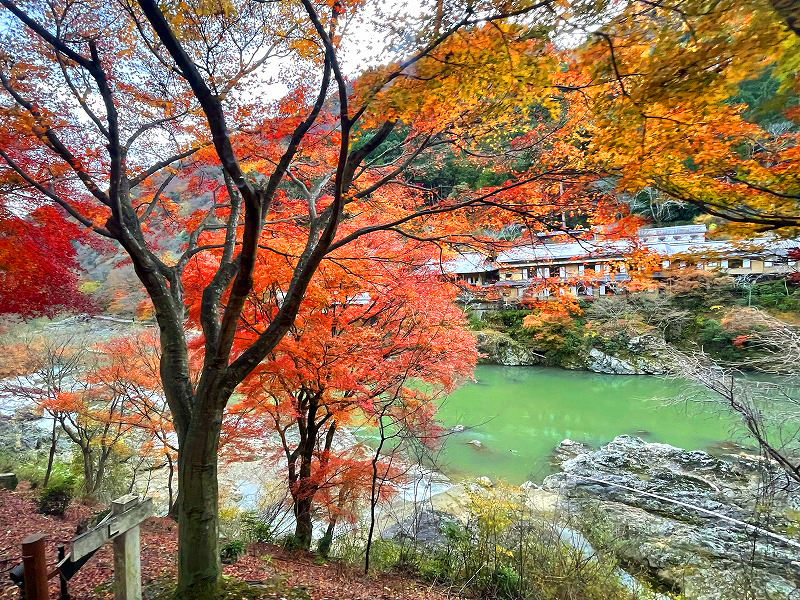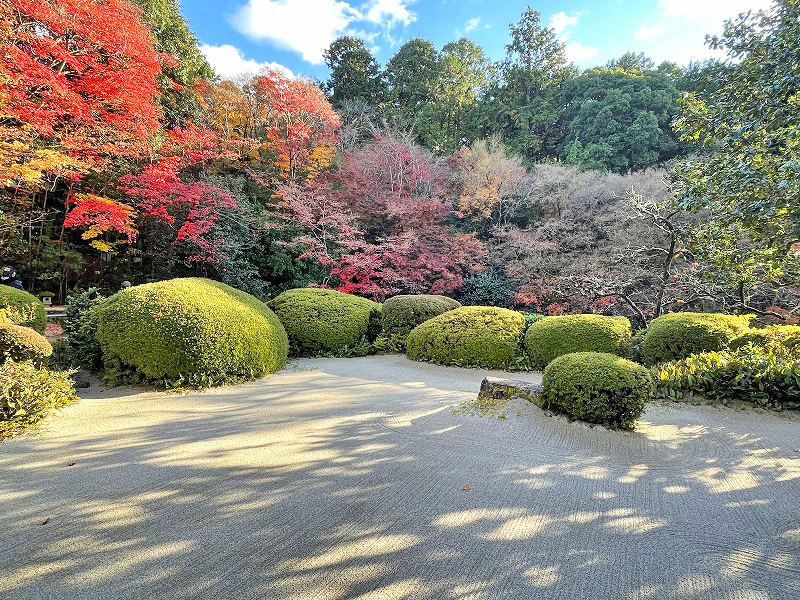 約3000本のもみじが境内を赤く飾る。(2021.11)