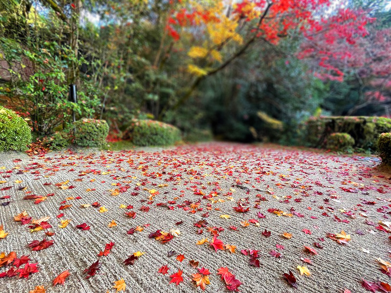苔や岩の上に広がるもみじの落ち葉。(2021.11)
