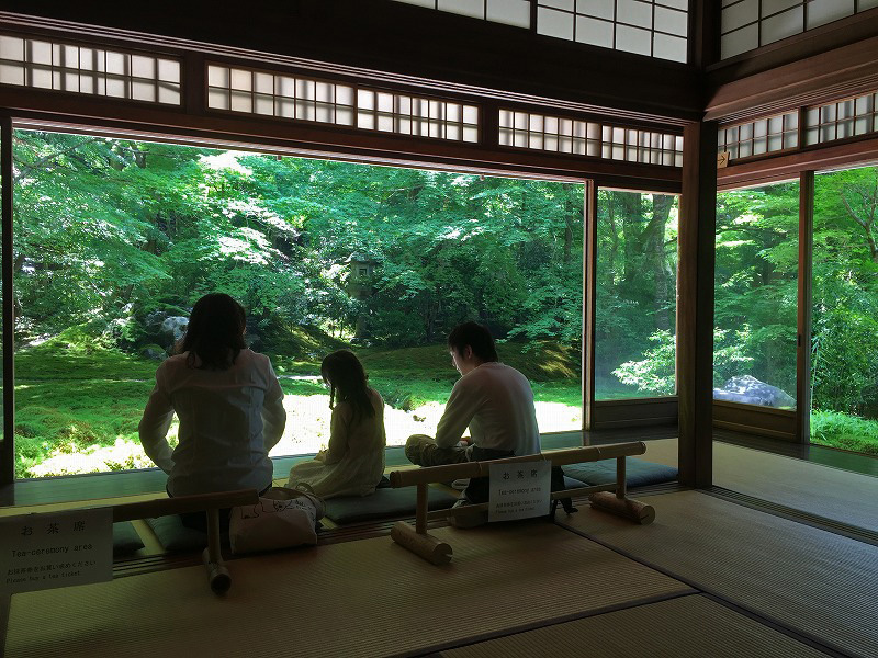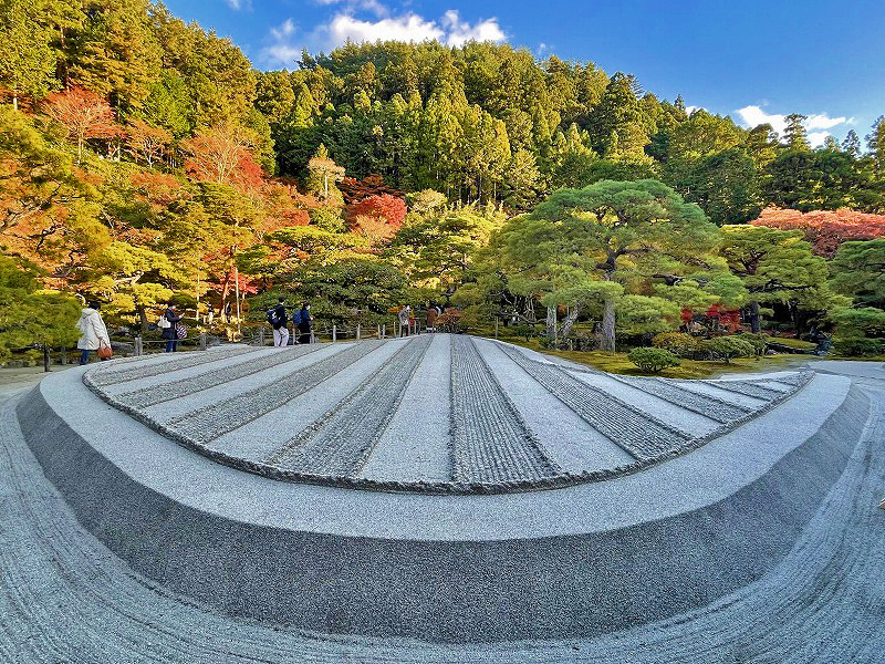 白砂を段形に盛り上げた「銀沙灘(ぎんしゃだん)」。月の光を反射させるために造られたという。(2021.11)