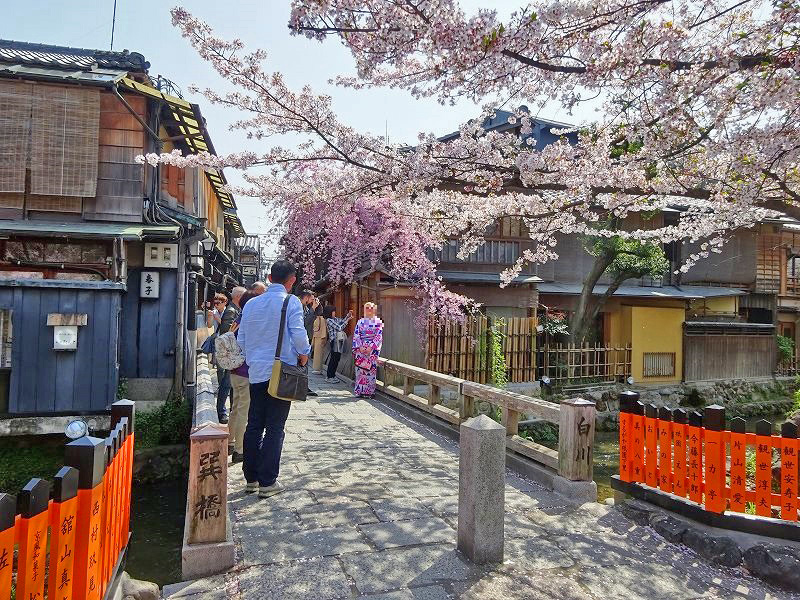 祇園の白川に架かる「巽橋」。定番の撮影スポット。(2017.4)