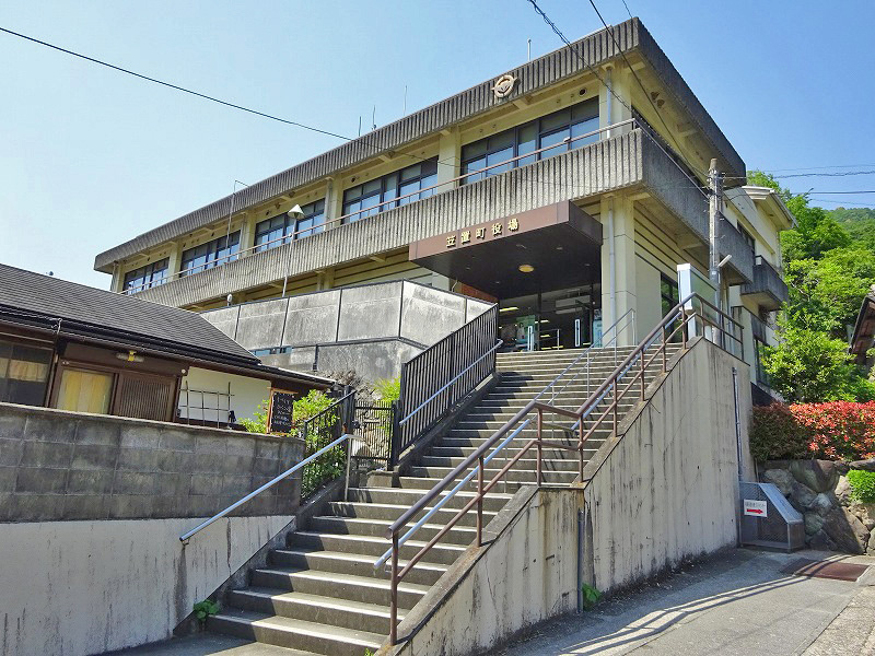 「茶源郷」として全国にPRする「和束町役場」。(2017.5)