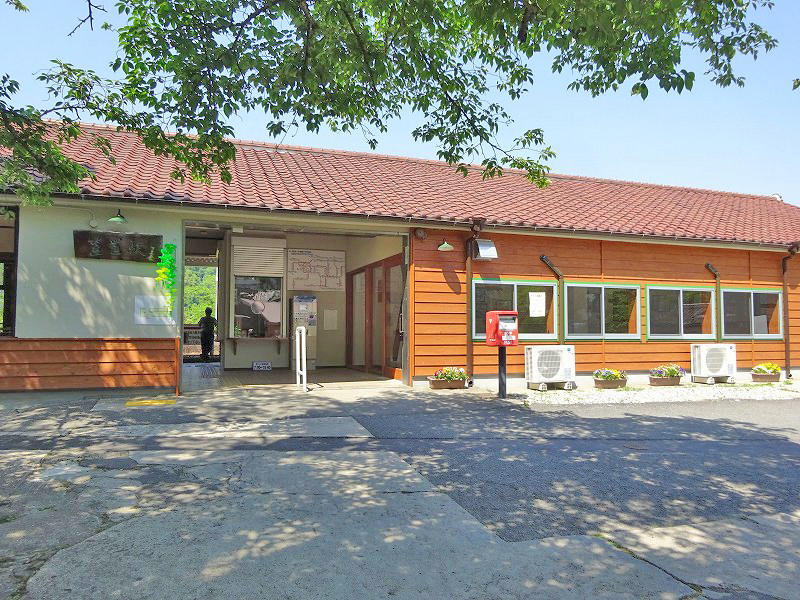ジャグジー風呂や露天風呂など6つの湯が楽しめる日帰り温泉施設「わかさぎ温泉笠置いこいの館」。中には休憩室や大広間の食堂、娯楽スペースなどもあった。(2017.5)