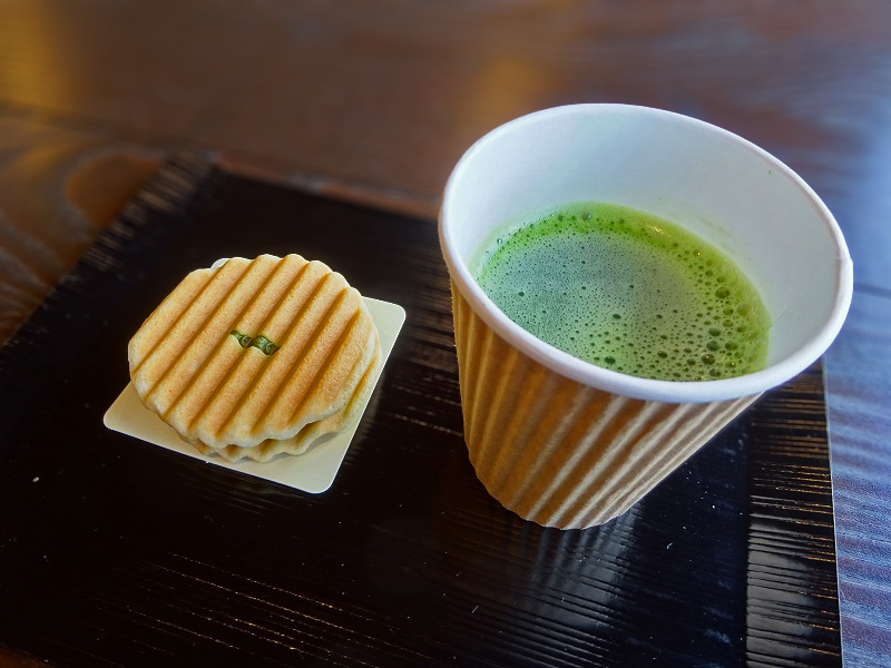 「和束茶」と「煎茶もなか」、「お茶のわらび餅」と茶づくしのおやつ。和束茶は渋味が旨みとなる上質な味わいだった。(2017.5)