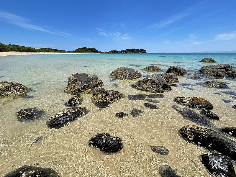 白銀色の砂浜が広がる「高浜海水浴場」。(2023.3)