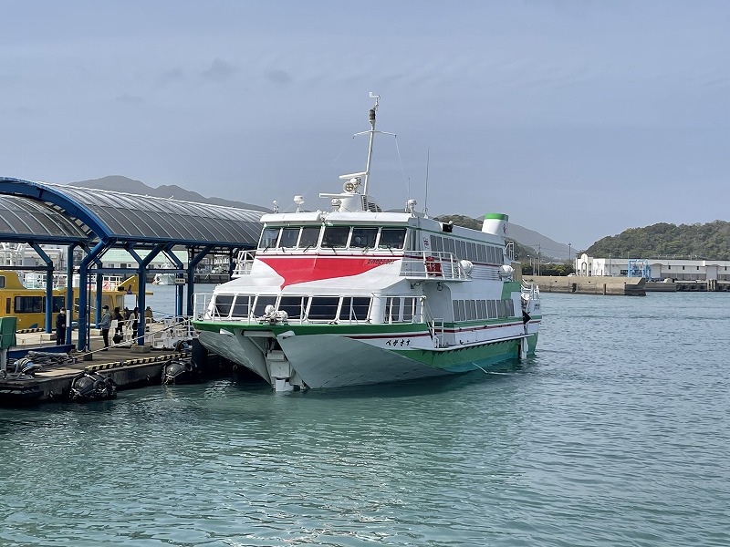 福江港と長崎港との間を約85分で結ぶ「九州商船」のジェットフォイル。(2023.3)