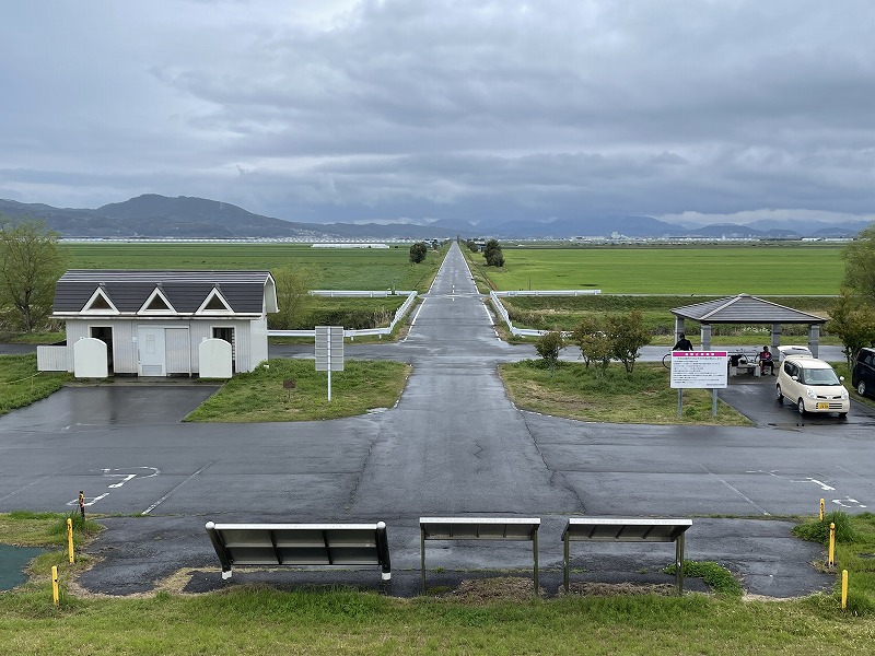 西端に位置する「玉江橋」から望む出島の全景。(2023.3)