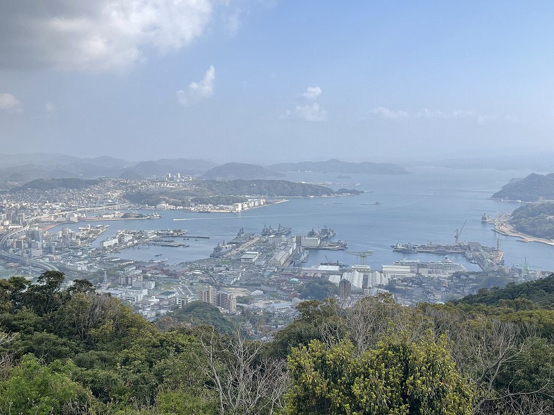 「長崎出島ワープ」から長崎港を挟んで望む「稲佐山」。標高は東京タワーと同じ333m。(2023.3)
