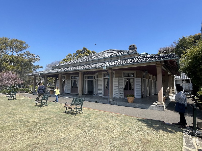 船の修繕中の外国人船員たちの宿泊施設として1869年に建てられた「旧三菱第2ドックハウス」。(2023.3)