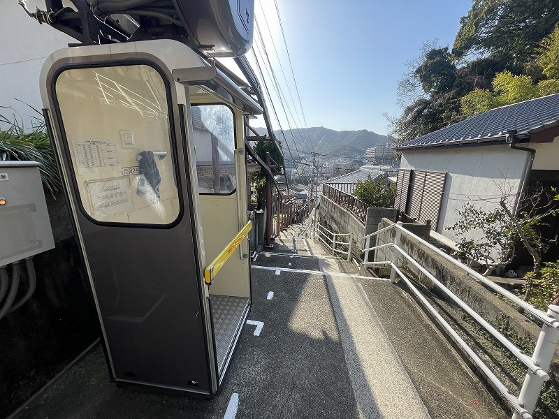 坂のまちならではの懸垂式モノレール「傾斜移送機器」。(2023.3)