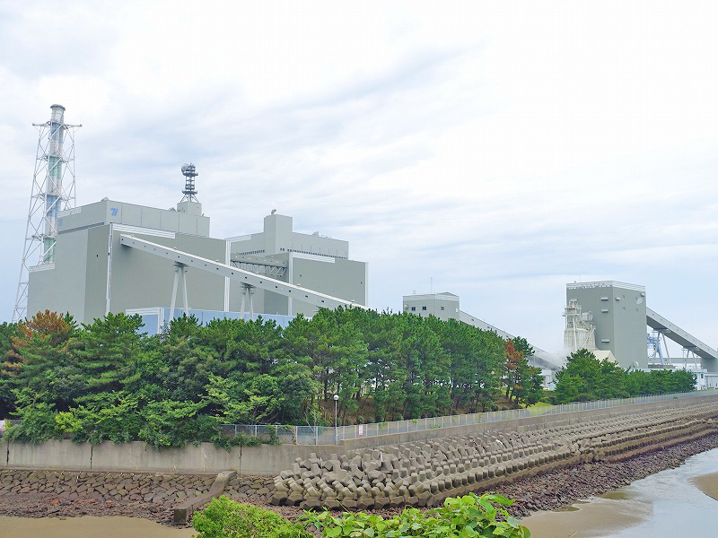 町の税収に大きく寄与する「九州電力苓北発電所」。総出力140万kwの石炭火力発電所。(2019.8)
