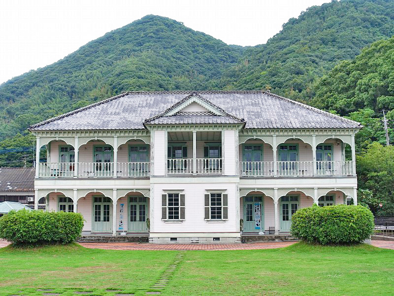1993年に復元された明治時代にコロニアル様式の旅館「浦島館」。ラフカディオ・ハーン(小泉八雲)も宿泊し紀行文を記した。(2019.8)