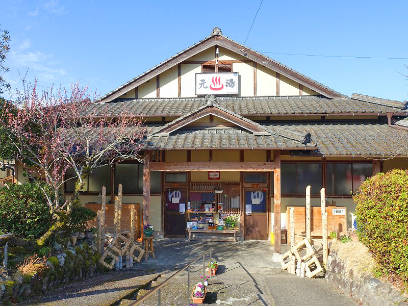 約50の源泉を有する人吉温泉の中心「人吉温泉元湯」。(2021.3)