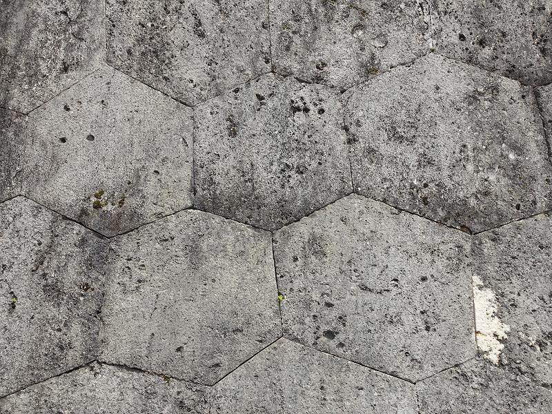 六角形に加工された石を隙間なく積み上げた美しい石垣。(2020.3)