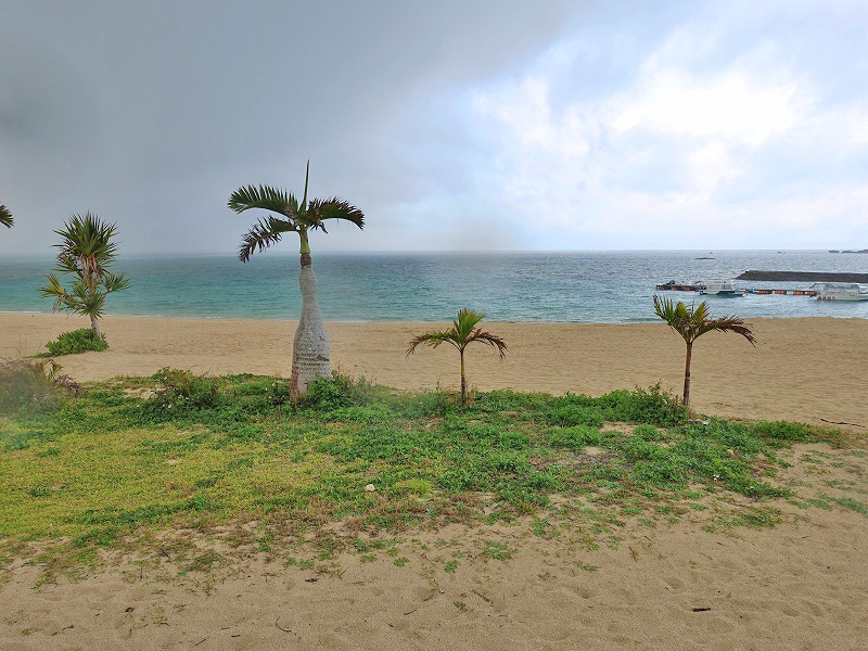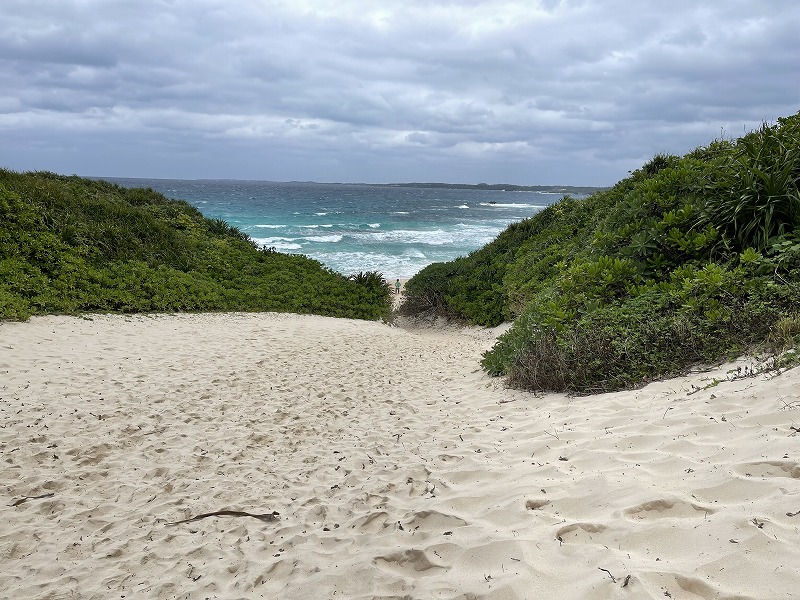 1kmにわたって白い砂浜が広がる「底地(すくじ)ビーチ」。日本一のマンタスポット。(2023.2)