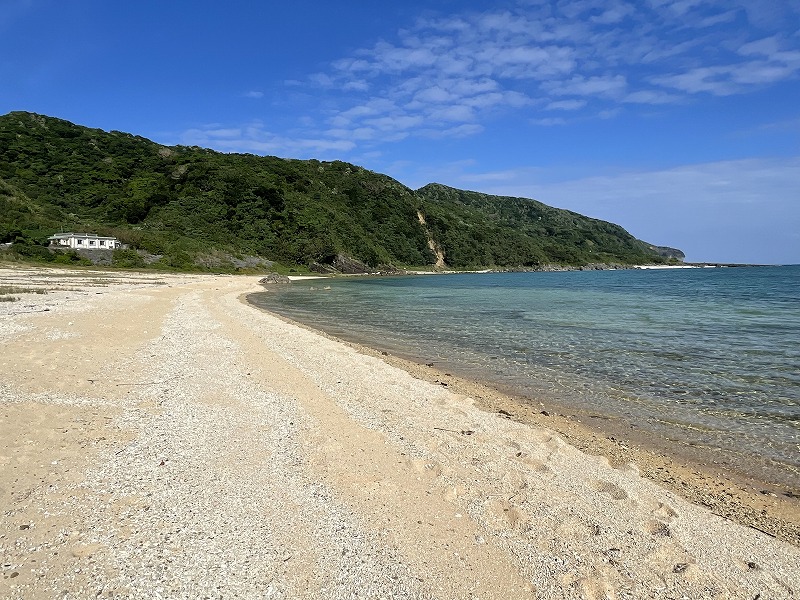 三日月状に白浜が広がる「比川浜」。(2023.2)